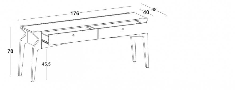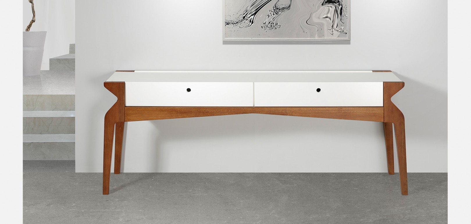 Tampo e frentes em MDF com acabamento em laca fosca.