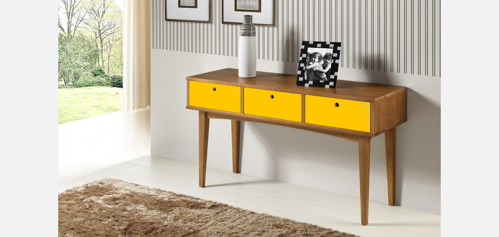 Portas e gavetas em MDF com acabamento em laca fosca.