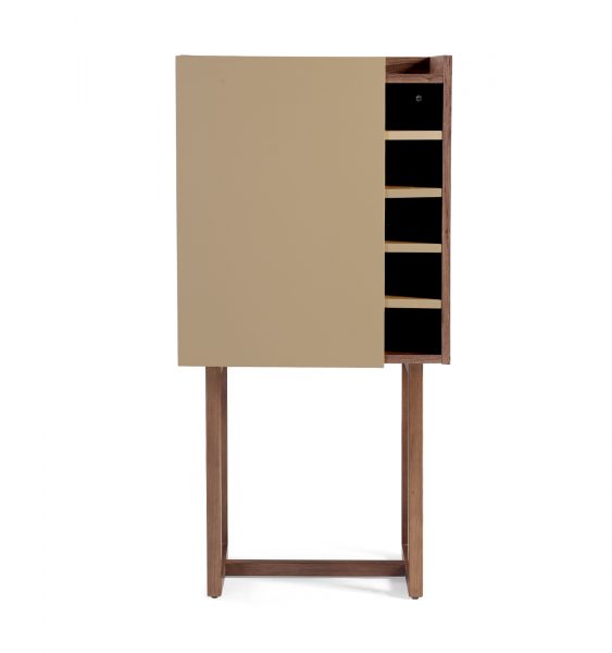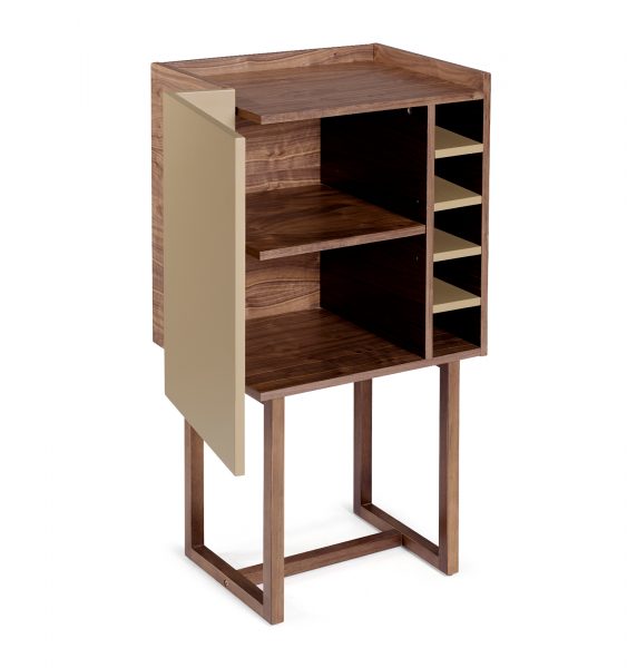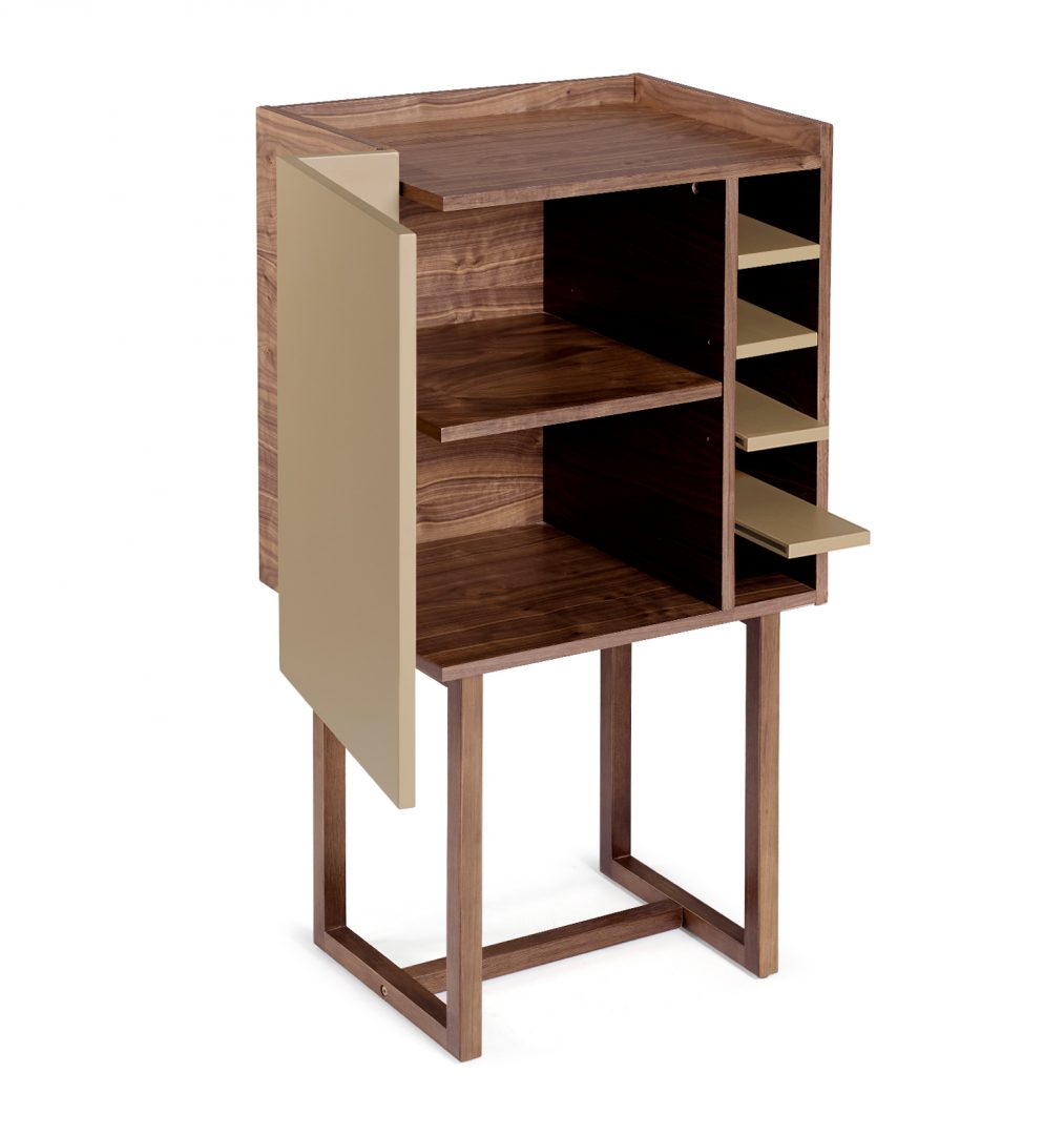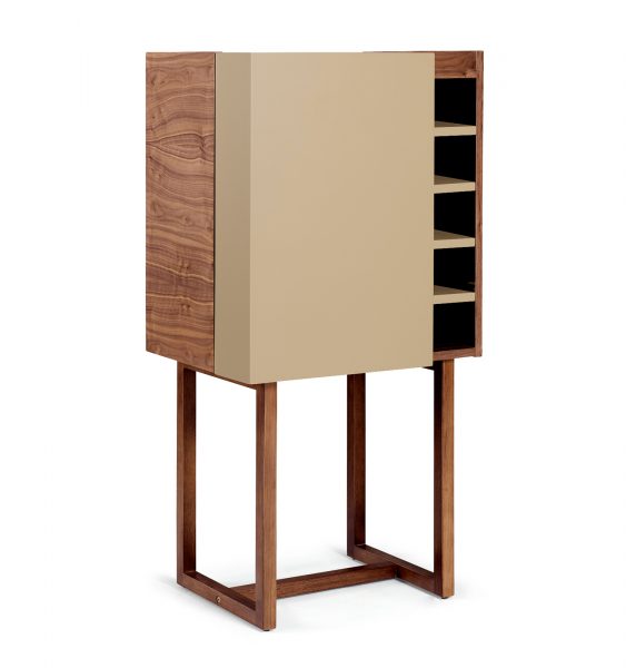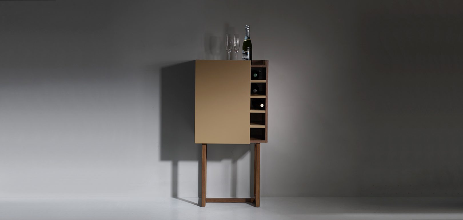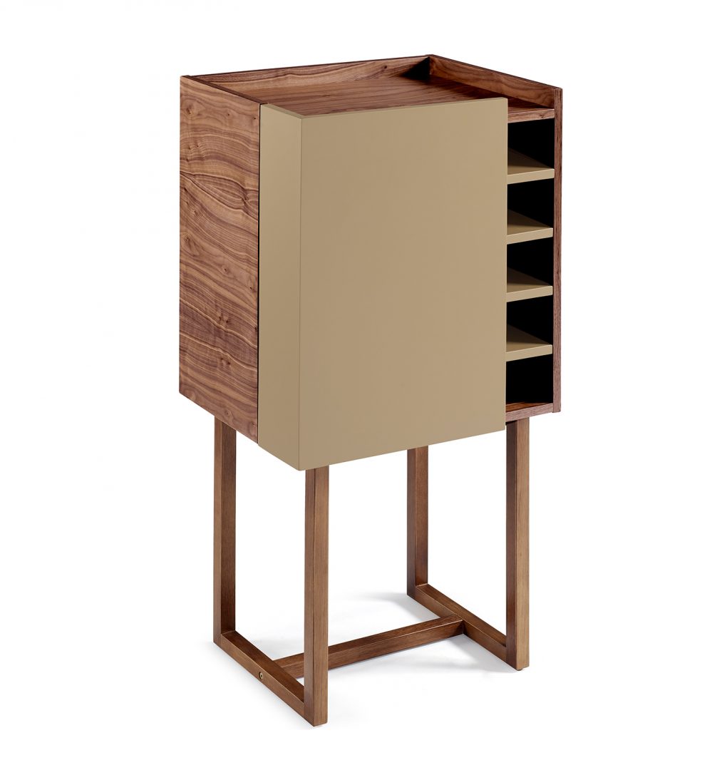 A linha une a estética forte e definida da madeira e mescla o acabamento em pintura em Laca fosca definido pela personalidade do cliente.