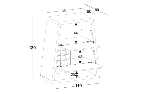 Dobradiças e pistão com amortecedor;