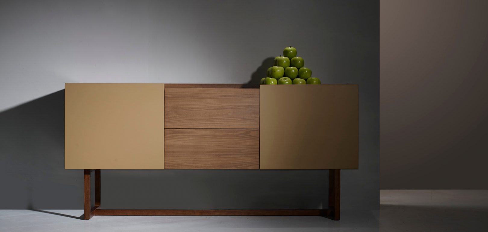 A linha une a estética forte e definida da madeira e mescla o acabamento de pintura em Laca fosca, com a cor definida pela personalidade do cliente.