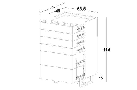 As diferentes medidas das gavetas além de contribuir a estética do móvel ajudam na separação e praticidade na hora de guardar os objetos e roupas.