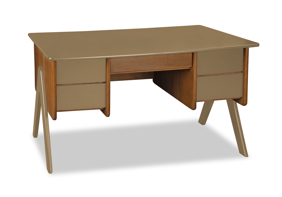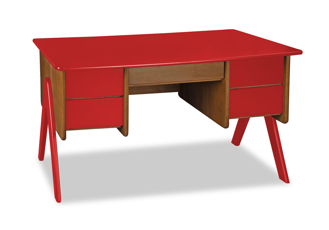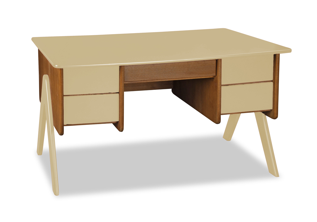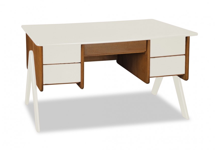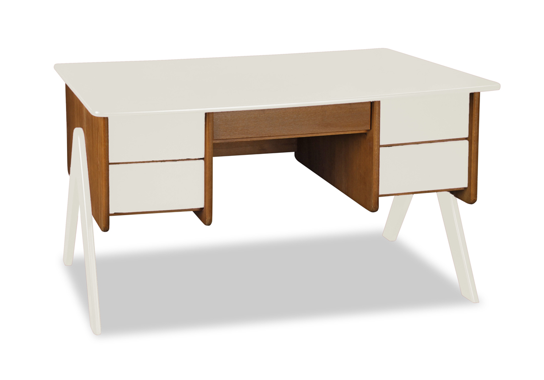 Tampo, pés e gavetas em MDF com acabamento em laca fosca.