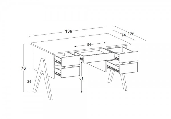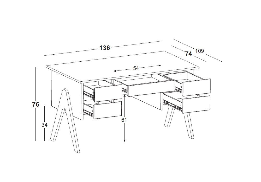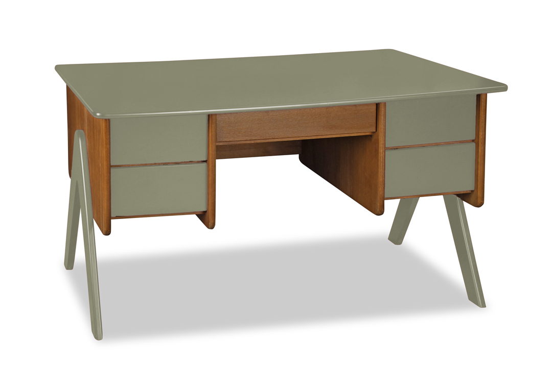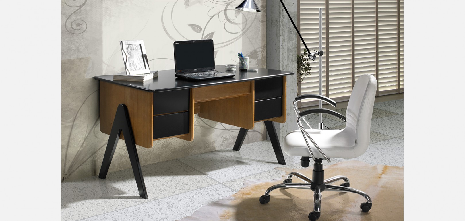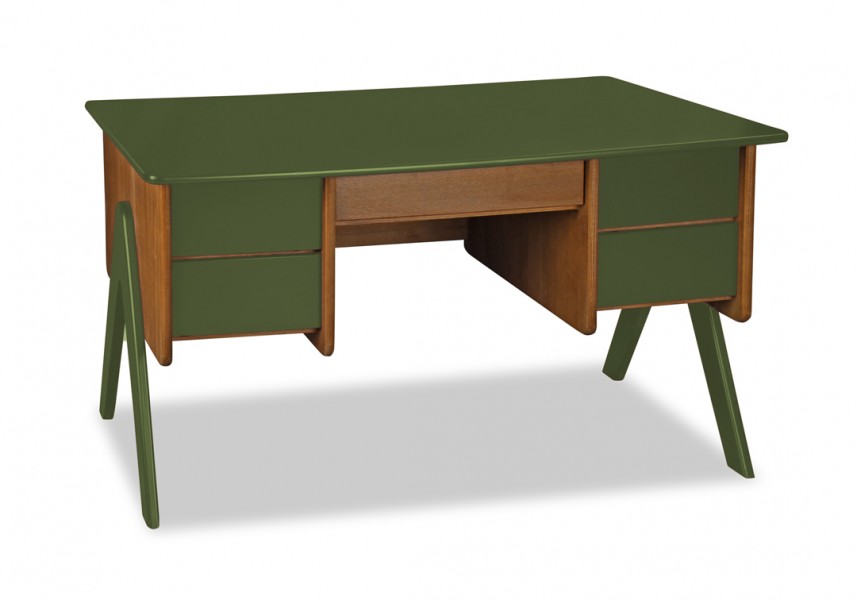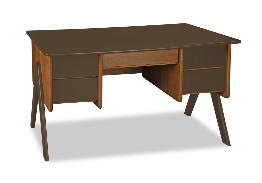 Tampo, pés e gavetas em MDF com acabamento em laca fosca.