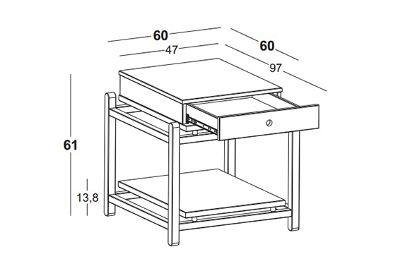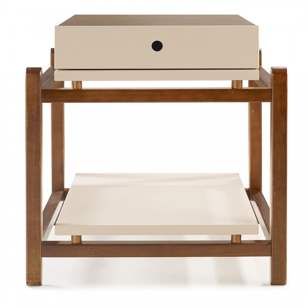 Prateleira, frente e fundo de gaveta em MDF com acabamento em laca fosca.
